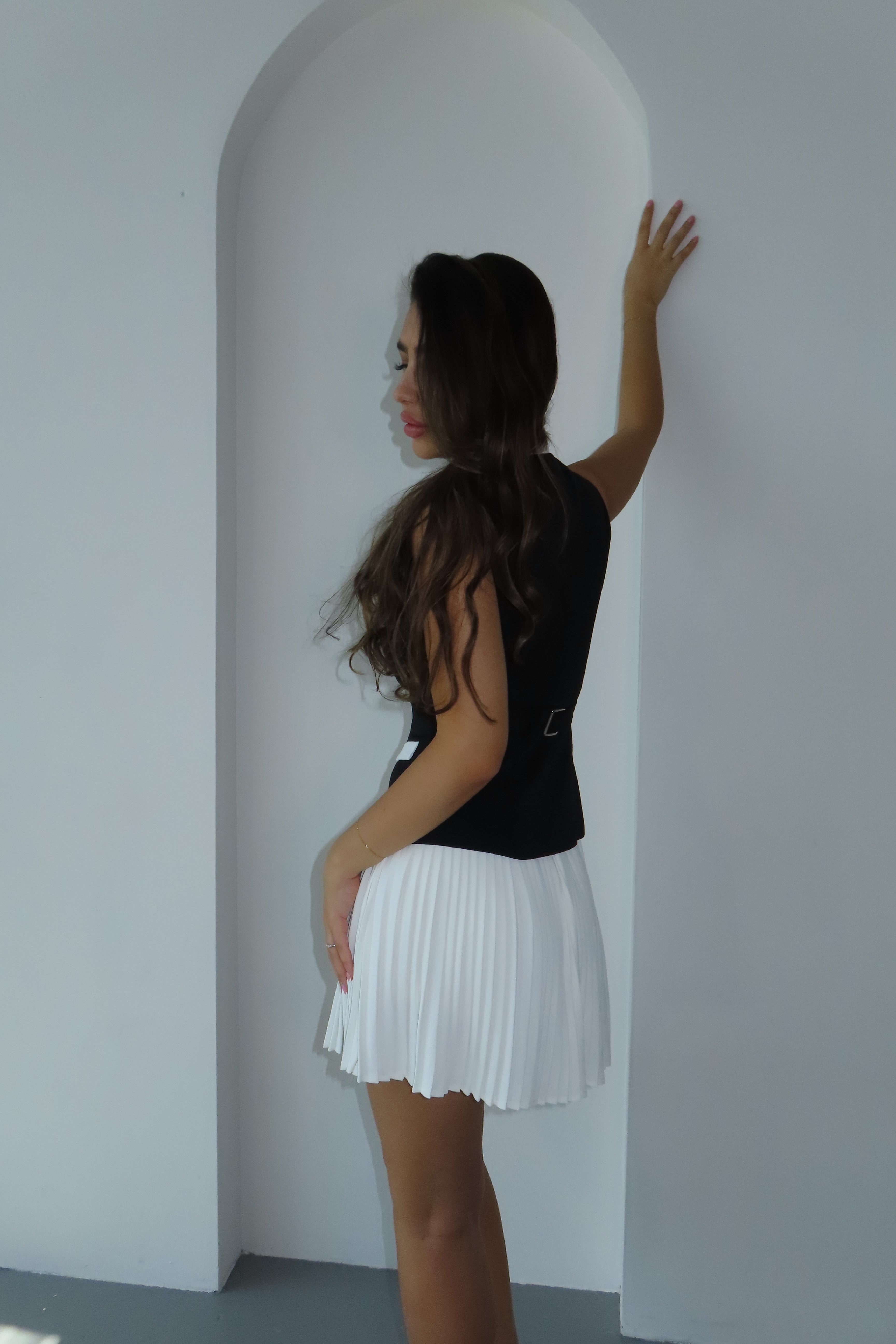 Polished and playful, the Kerri top puts a bold twist on classic tailoring. Designed in a sleeveless cut with contrast details and oversized buttons, it’s fully lined in smooth satin for a comfortable and luxurious feel. Tuck it into trousers or pair with the Kerri Skirt for an elevated set.