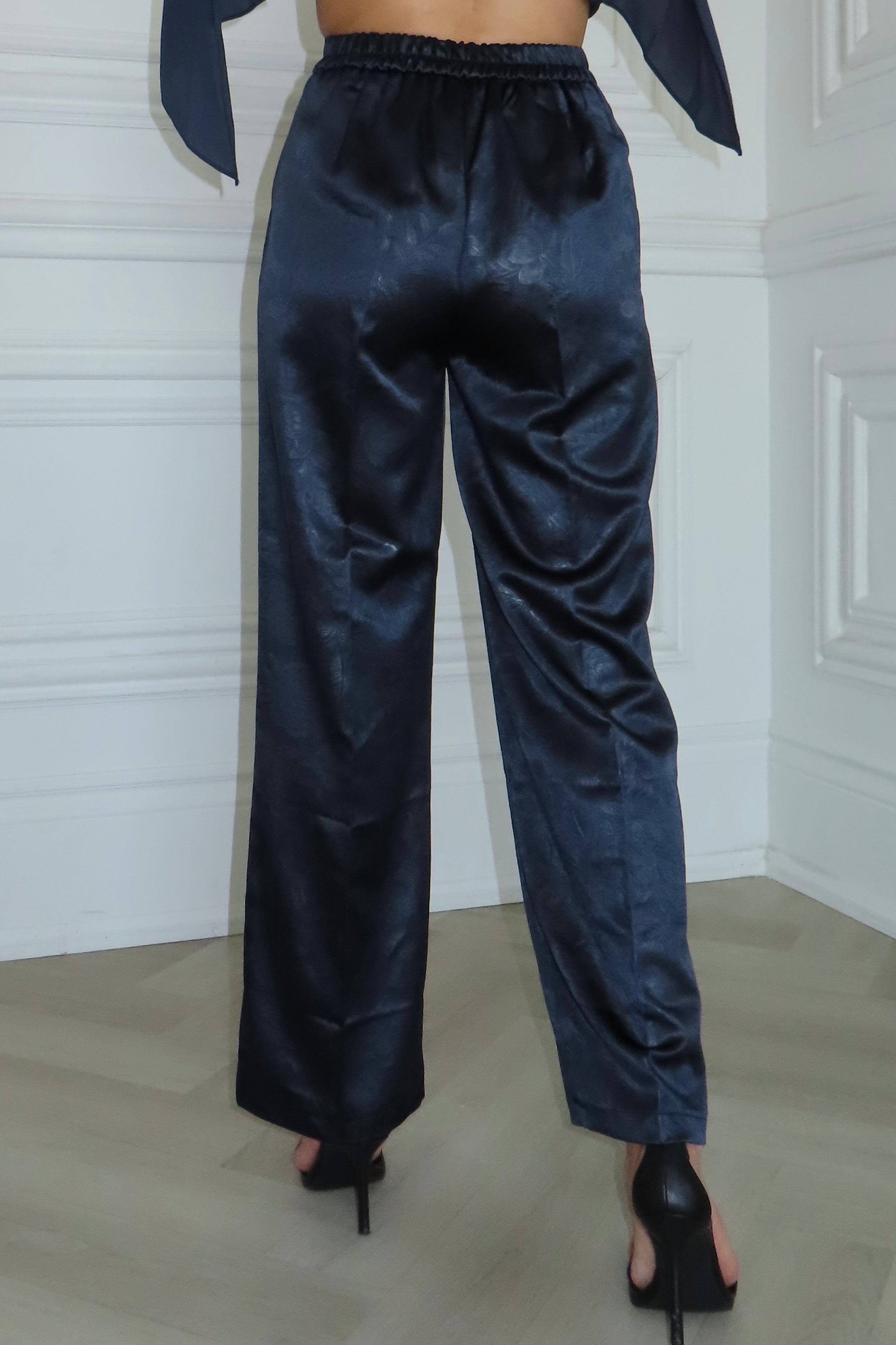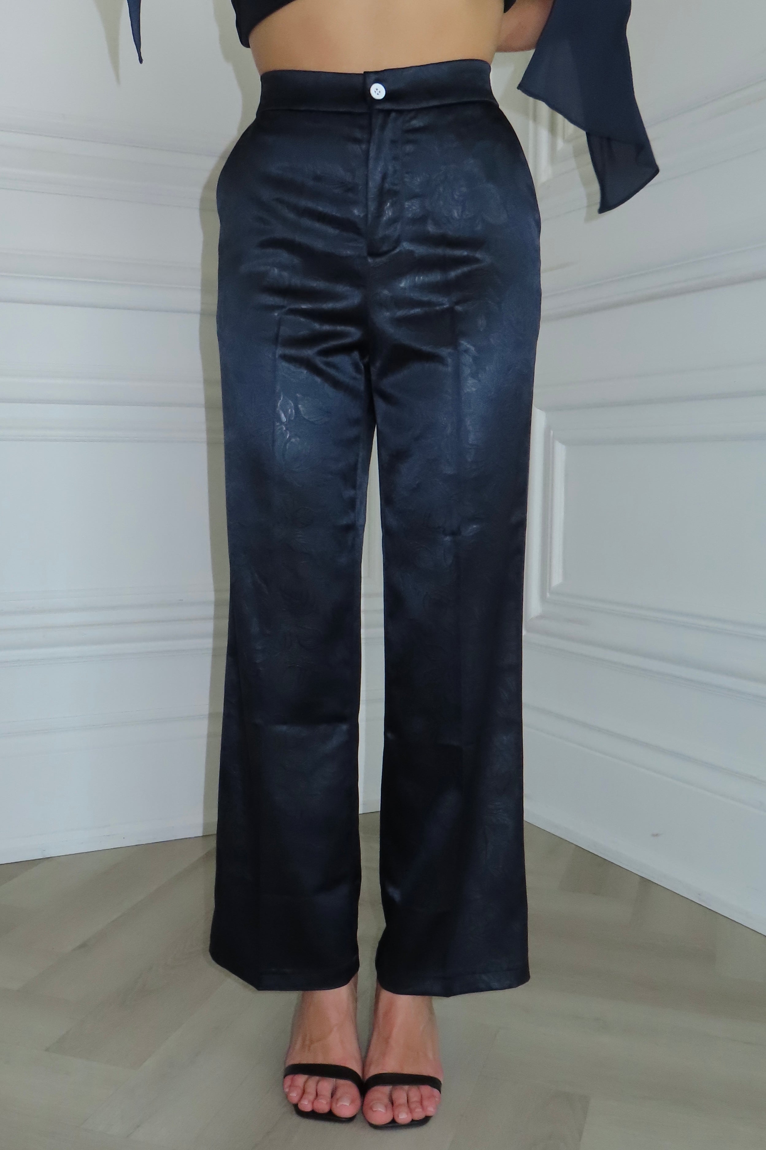 The Natalie Trousers are sleek, structured, and endlessly flattering. Crafted from a navy satin that glides with every step, this mid-waisted silhouette elongates the leg while offering just the right amount of flair. Pair with the Natalie Top for a full set that turns heads.